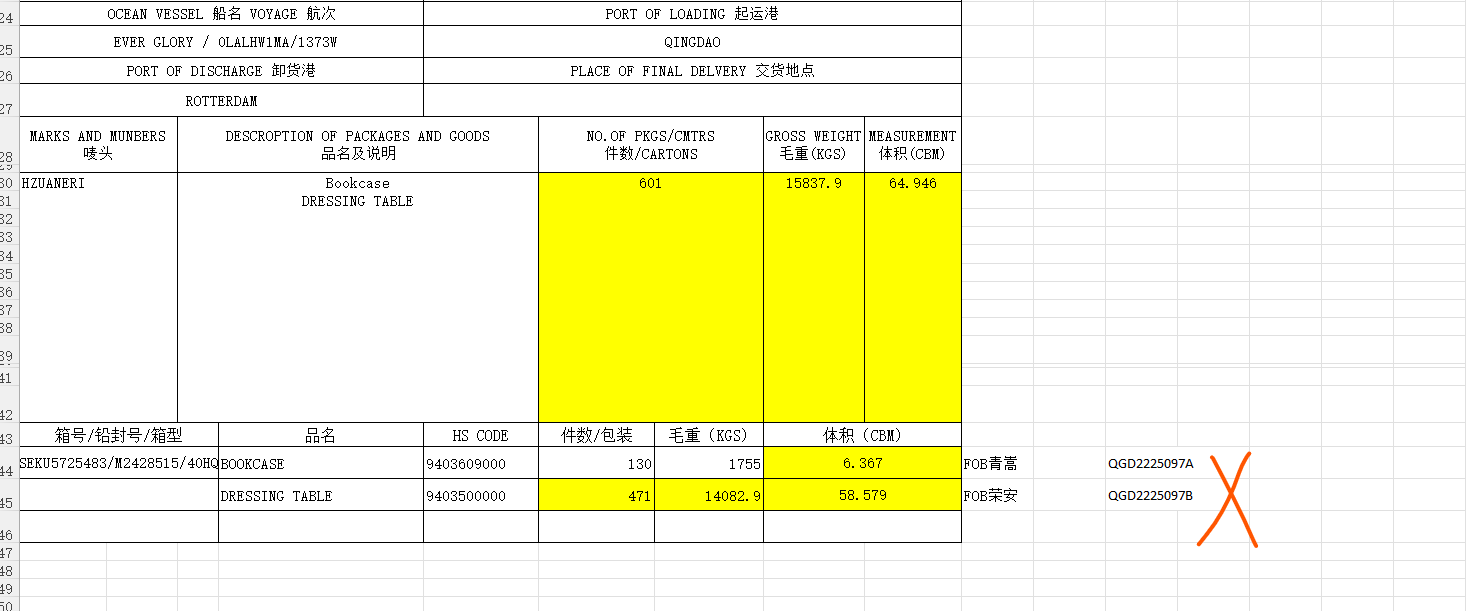 "reasoning": "Container number stated in all shipping documents - 40HC container",